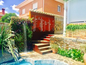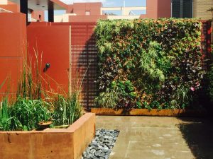 Jardín vertical con ducha de piscina en Alcalá de Henares