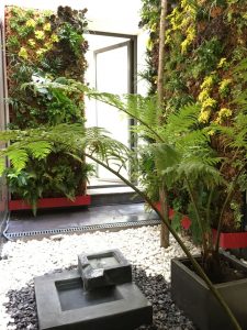 Jardín vertical con juego de agua en vivienda particular en Madrid